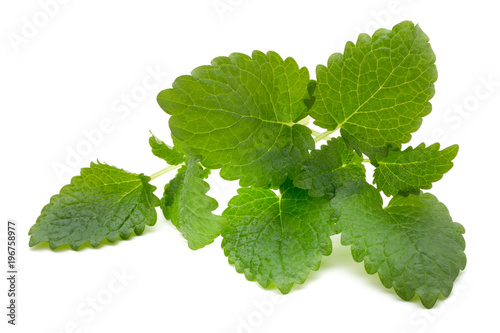 Mint leaf close up on a white background.