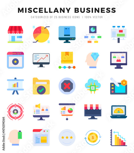Miscellany Business Icons bundle. Flat style Icons. Vector illustration.