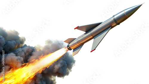 Missile launching with fiery trail isolated on transparent background