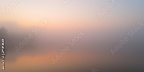 Mist gently hovers over a serene lagoon at sunrise, creating a dreamy and tranquil atmosphere, reflection, beauty