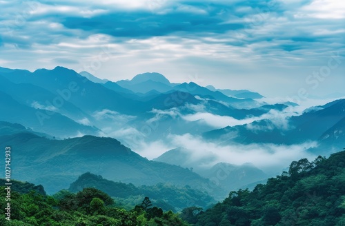 Misty Mountain Layers at Dawn Scenery