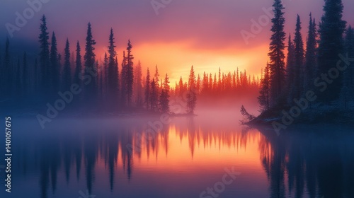 Misty Sunrise over a Frozen Lake