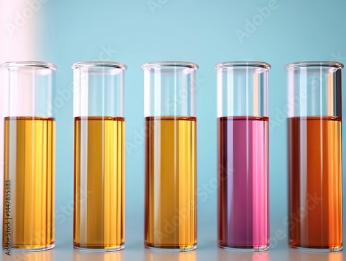 Mixing colors experiment laboratory test tubes bright environment eye-level view scientific concept
