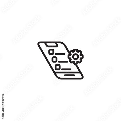 Mobile app settings. Phone with gear icon. Managing apps. Mobile preferences. Adjusting app settings. Configuring mobile.