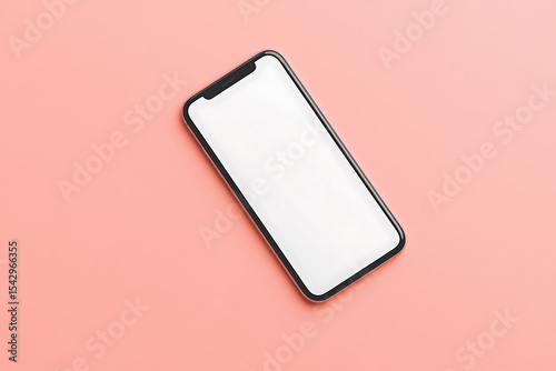 Mobile Device Display: Modern smartphone with a blank screen on a pink surface, showcasing a sleek design and potential for interface mockups.