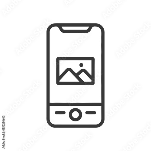 Mobile Phone with Landscape Image, Minimalist Line Art Icon