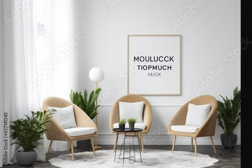 Mock up poster frame in interior background, Scandinavian style, 3D render