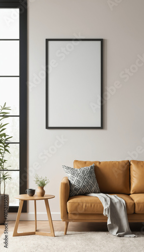 Mock up poster in Living room, Scandinavian decoration, 3d illustration