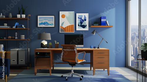 mock up poster with a background of a home's interior, a home office.