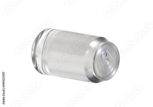 Mockup of transparent aluminum bottle with liquid without logo, transparent background