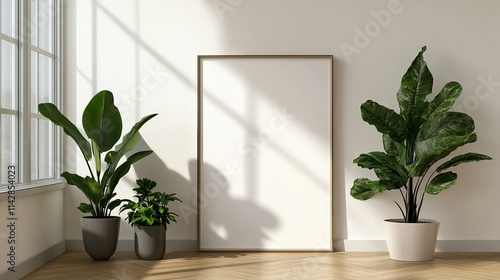 Mockup Of Vertical Customizable Poster With Plants