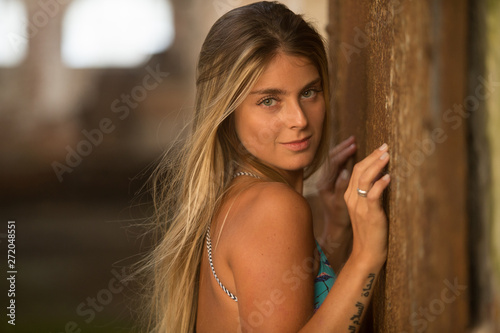 Model Fitness blonde shows off her beauty in a centennial factory off in the city of Rio Grande, Brazil.