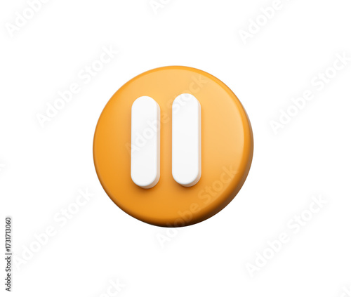 Modern 3D orange pause button icon for media players and user interfaces. 3D illustration