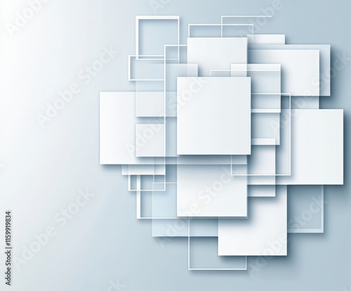 Modern abstract art with layered white squares on a gray background, enhancing contemporary interior design and minimalist aesthetics.