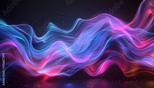 Modern abstract pink blue gradient flowing wave lines on dark background.