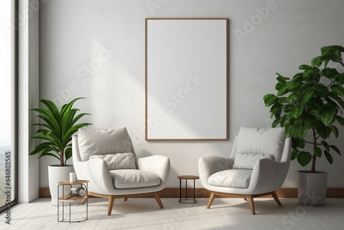 Modern Aesthetic Interior Design with Small Blank Poster Created with Generative AI