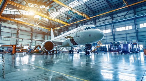 Modern Aircraft in Spacious Maintenance Hangar with Sunlight