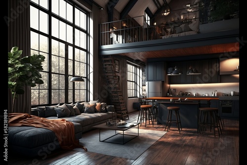 Modern and luxury interior of a living room. Penthouse concept. AI render.
