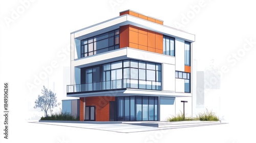 Modern architectural rendering of a contemporary three story residential building