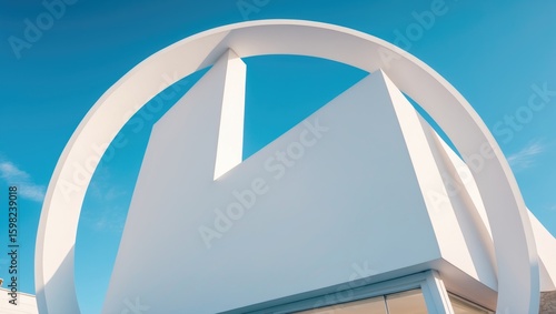 Modern architectural structure with a large circular frame and geometric design. Innovative and futuristic building design. The concept of modern architecture and design.