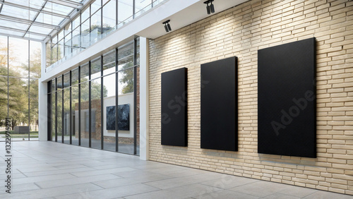 Modern Art Gallery Interior with Blank Canvas Mockup