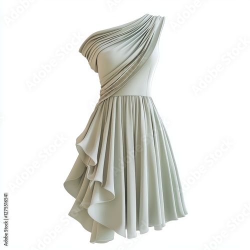 Modern asymmetric one-shoulder dress in soft pastel color isolated on white