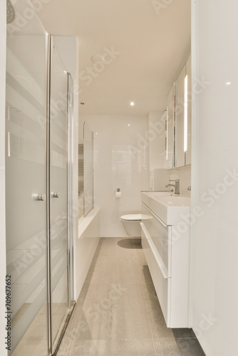 Modern bathroom interior with clean lines and neutral tones