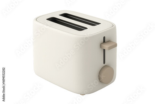 Modern beige two-slice toaster, kitchen appliance isolated on transparent background