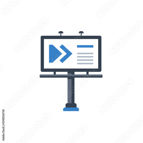Modern Billboard Icon with Blue Arrow Design and Text.
