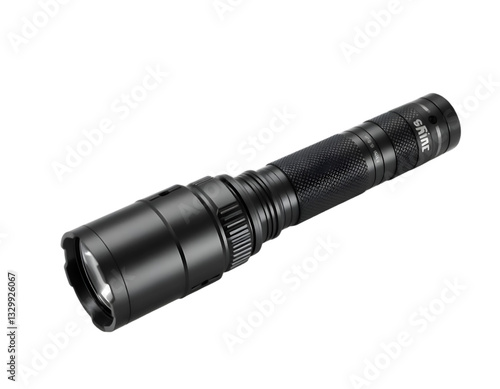 Modern black flashlight isolated on transparent background