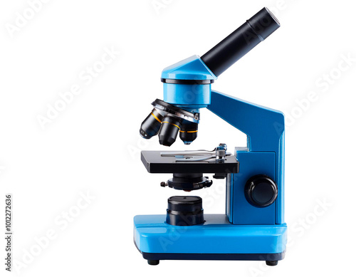 Modern blue Microscope isolate on transparency background. medicine and research concept