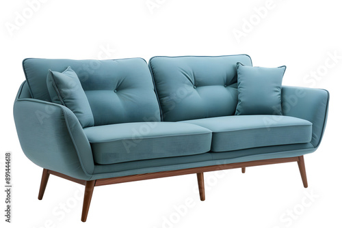 Modern Blue Sofa with Wooden Legs isolated on white background