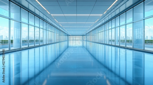 Modern Bright Hallway with Large Windows and Reflection on Floor