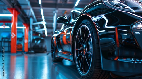 Modern car parked in spacious garage, ready for trade-in, showcasing clean and well-maintained interior.
