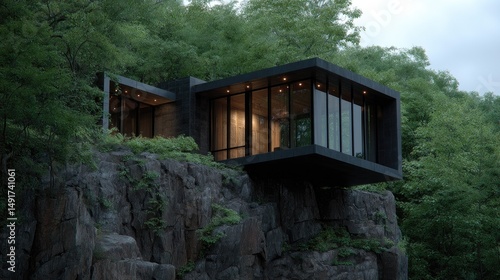 Modern Cliffside Home Glass with Stone, and Natures Embrace Architectural Gem.