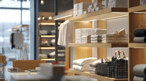 Modern clothing store interior with warm lighting