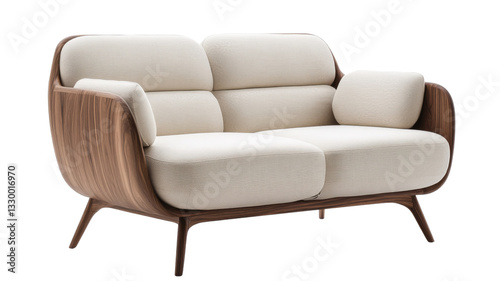Modern comfortable sofa with wooden frame on transparent background