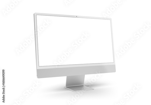 Modern computer screen isolated on transparent background. Silver color. Front view. 3d rendering