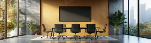 Modern Conference Room with Large Windows and Greenery for Professional Meetings and Corporate Presentations