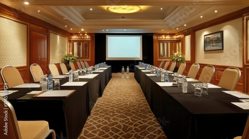 Modern Conference Room with Long Table Setup