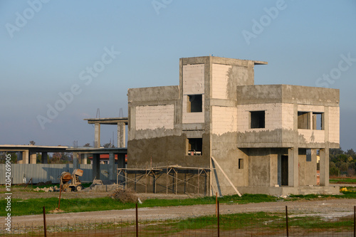 Modern construction project showcasing a developing structure in a rural landscape