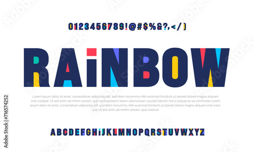 Modern creative minimal abstract digital rainbow colorful alphabet font with number design template set. Minimal urban sport fashion futuristic geometric technology Trendy style or kid logo typography