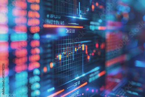 Modern digital financial stock market data visualization combined with Forex trading charts.