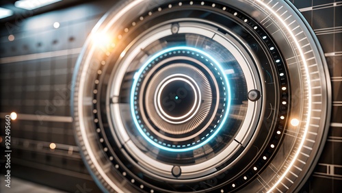Modern Digital Interface with Black Background and Luminous Blue Circle