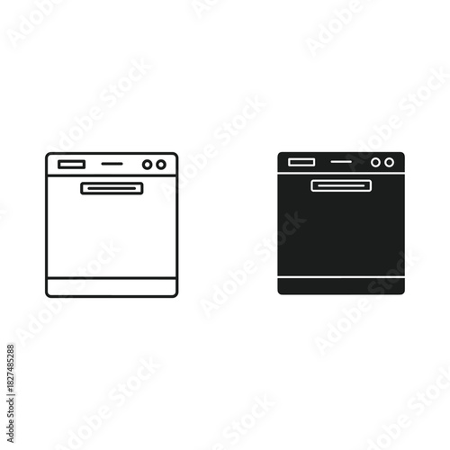 Modern dishwasher icon outline and filled silhouette on white background