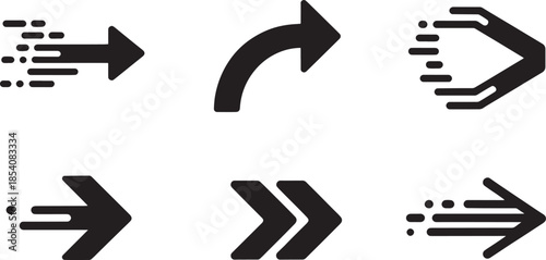 Modern Dynamic Arrow Icons with Motion Effect – Vector Set of Arrows with Speed Lines, Minimalist Design for Digital Art, Websites, and Motion Graphics Projects