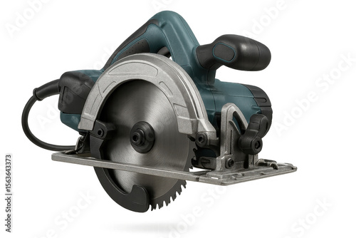 Modern electric circular saw isolated on transparent background, powerful cutting tool.