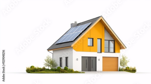 Modern Energy Efficient House Design Featuring Solar Panels and Stylish Architecture Surrounded by Lush Greenery and Simplistic Landscaping
