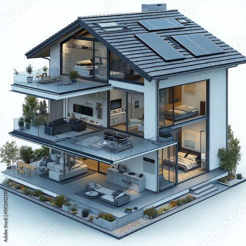 Modern energy-efficient smart home with solar panels