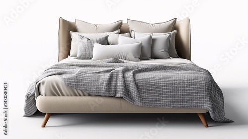 Modern Fabric Bed with Stylish Bedding and Cozy Decorative Pillows in Scandinavian Design Bedroom
